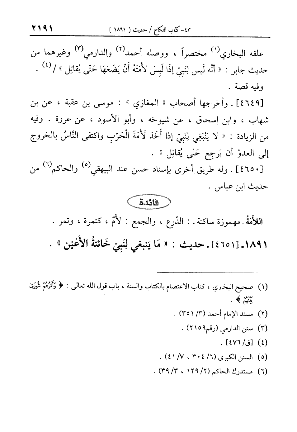 علقه البخاري (¬1) مختصرًا، ووصله أحمد (¬2) والدارمي (¬3) وغيرهما من حديث جابر: "أنه لَيس لِنَبِيّ إذا لَبِسَ لأمَتَهُ أَنْ يَضَعَهَا حَتى يُقاتِل" (¬4). وفيه قصة.