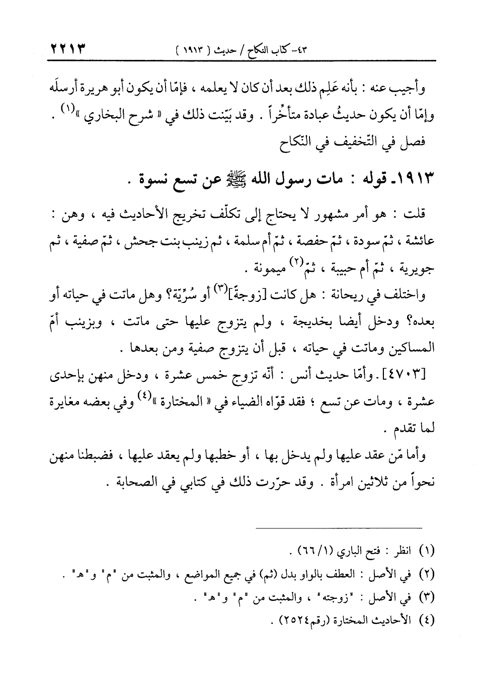 1913 - قوله: مات رسول الله - صلى الله عليه وسلم - عن تسع نسوة.