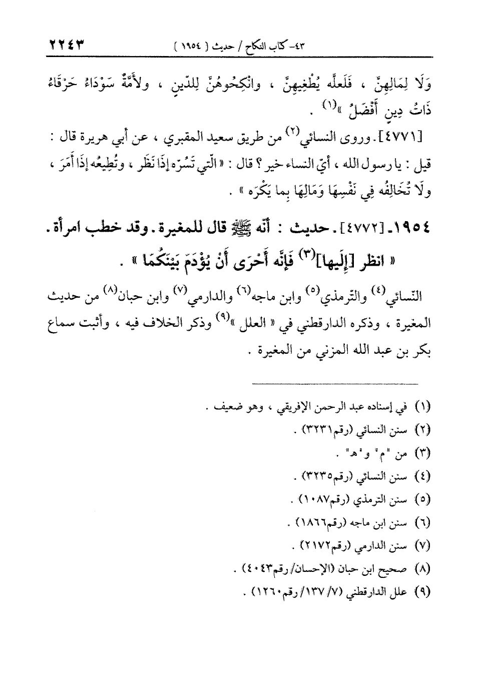 1954 - [4772]- حديث: أنّه - صلى الله عليه وسلم - قال للمغيرة -وقد خطب امرأة- "انظر [إليها] (¬3) فَإنَّه أَحْرَى إَنْ يُؤْدَمَ بَيْنكُمَا".