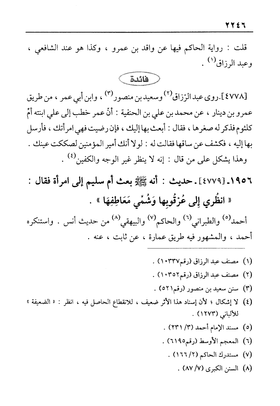 1956 - [4779]- حديث: أنه - صلى الله عليه وسلم - بعث أم سليم إلى امرأة فقال: "انظُري إلى عُرْقُوبِها وَشُمِّي مَعَاطِفِهَا".