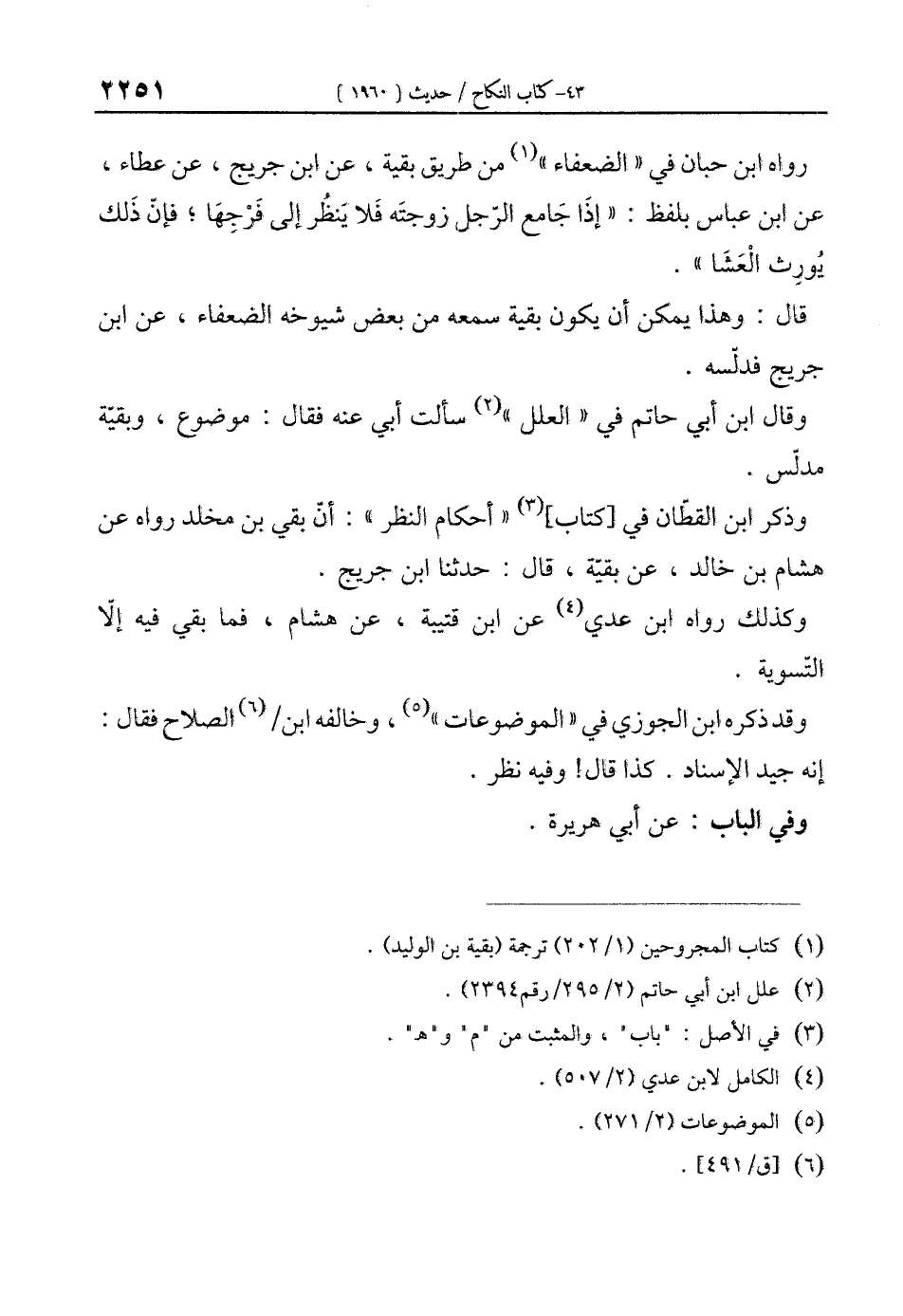 (¬1) كتاب المجروحين (1/ 202) ترجمة (بقية بن الوليد).