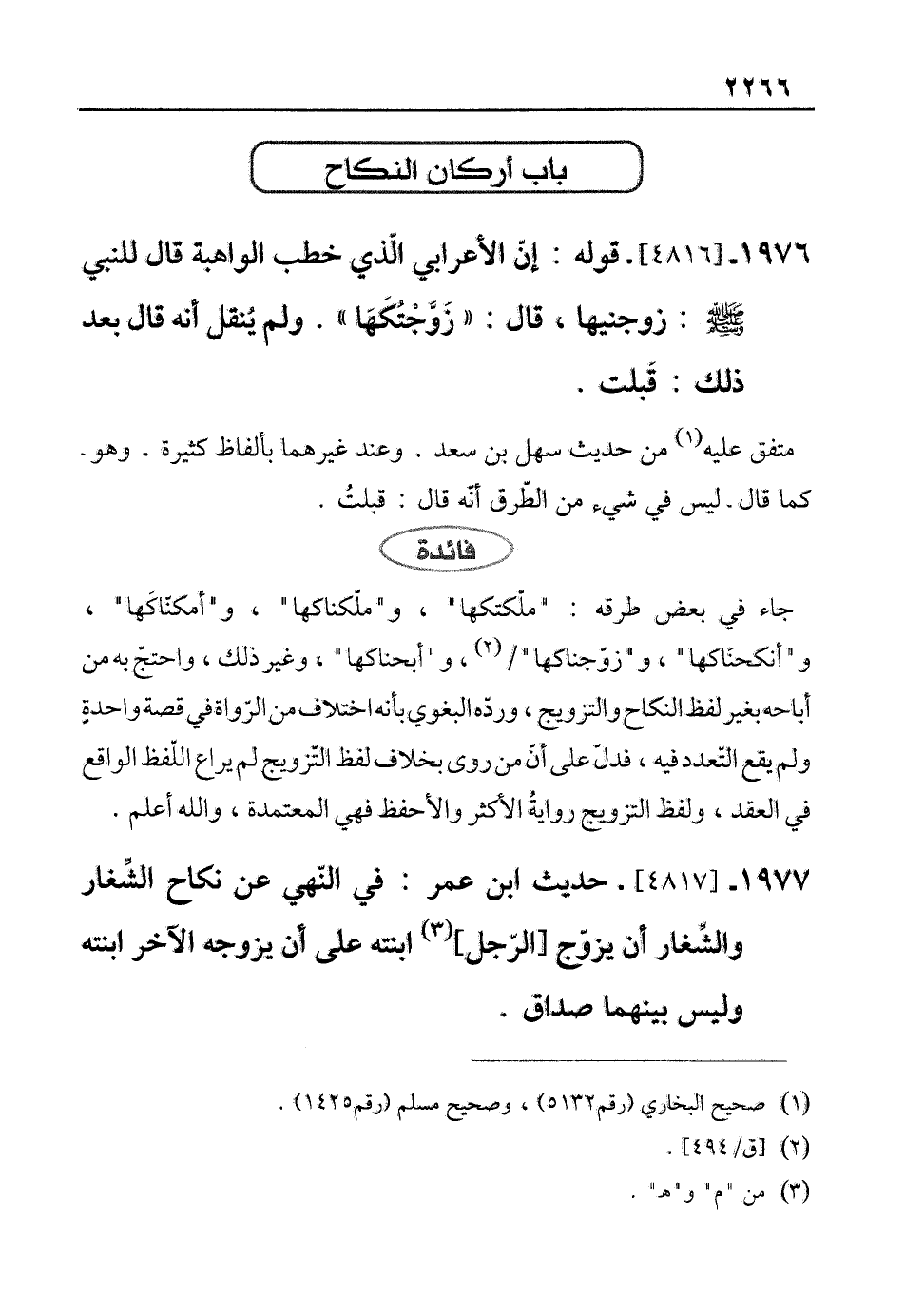 1976 - [4816]- قوله: إنّ الأعرابي الّذي خطب الواهبة قال للنبي - صلى الله عليه وسلم -: زوجنيها، قال: زوَّجْتُكَها". ولم يُنقل أنه قال بعد ذلك: قَبلت.