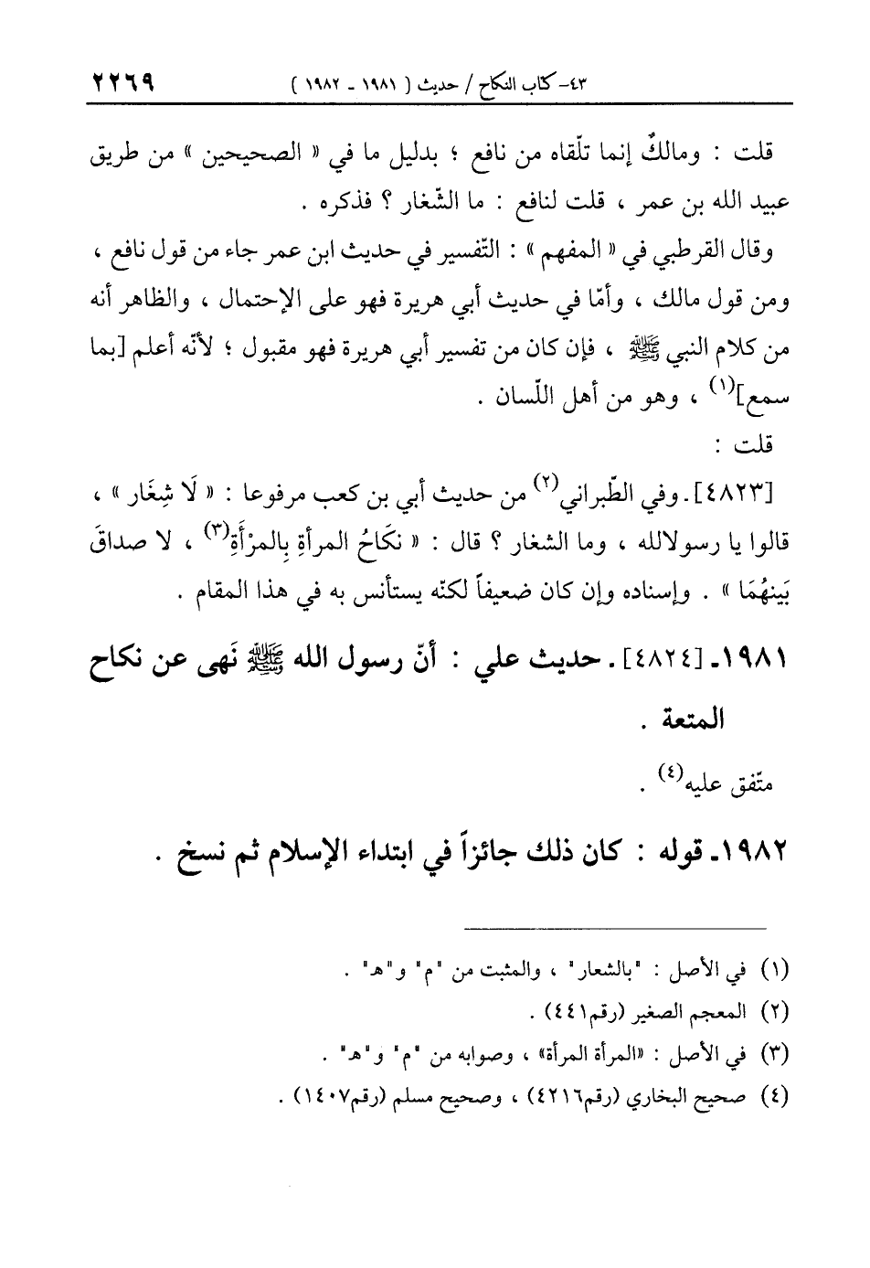1981 - [4824]- حديث علي: أنّ رسول الله - صلى الله عليه وسلم - نَهى عن نكاح المتعة.