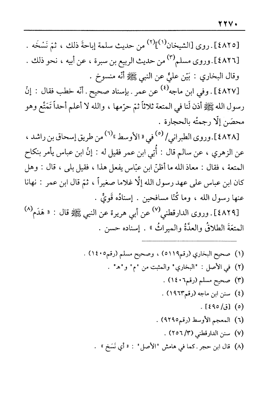 [4829]- وروى الدارقطني (¬7) عن أبي هريرة عن النبي - صلى الله عليه وسلم - قال: "هَدَم (¬8) المتعَةَ الطلاقُ والعدَّةُ والميراثُ". إسناده حسن.