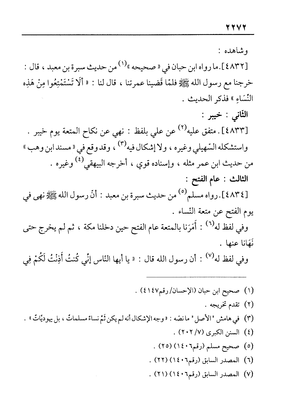 [4834]- رواه مسلم (¬5) من حديث سبرة بن معبد: أنّ رسول الله - صلى الله عليه وسلم - نهى في يوم الفتح عن متعة النّساء.