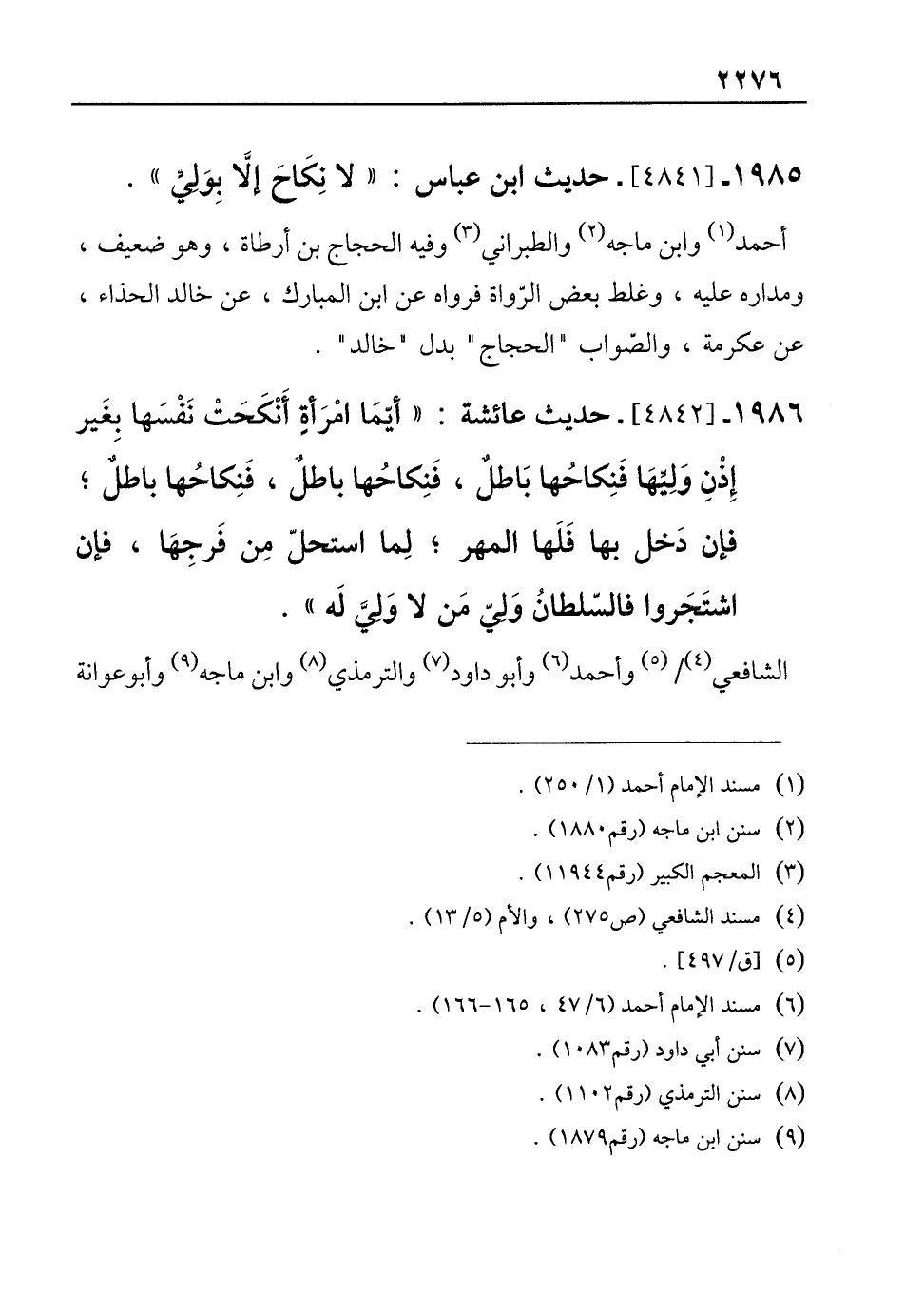 1985 - [4841]- حديث ابن عباس: "لا نِكَاحَ إلَّا بِوَلِيٍّ".