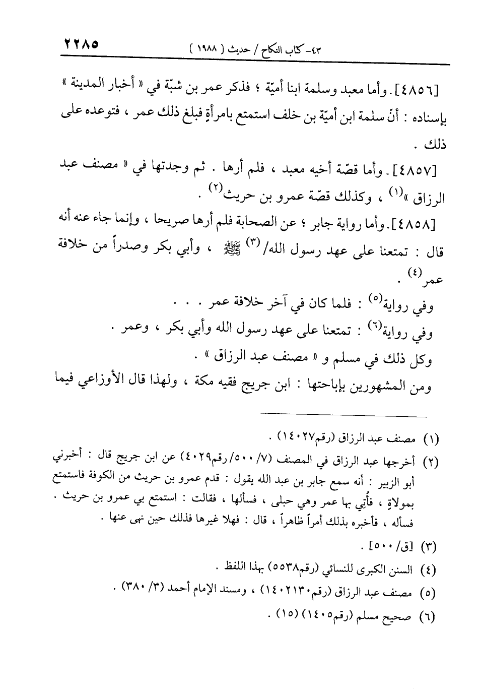 [4858]- وأما رواية جابر؛ عن الصحابة فلم أرها صريحا، وإنما جاء عنه أنه قال: تمتعنا على عهد رسول الله (¬3) - صلى الله عليه وسلم -، وأبي بكر وصدرًا من خلافة عمر (¬4).