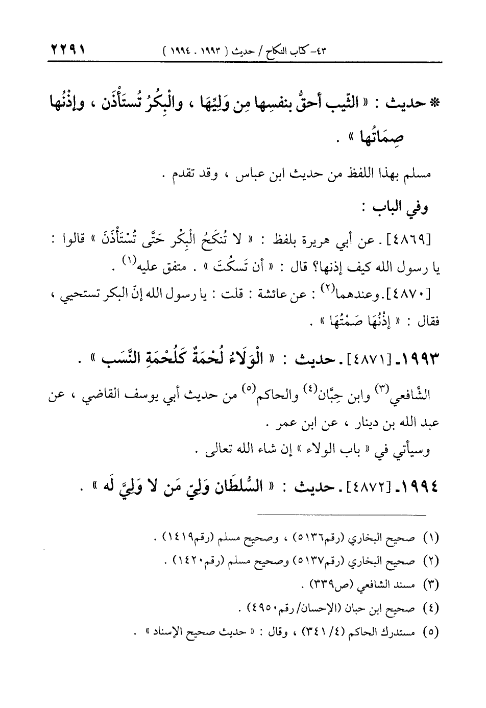1994 - [4872]- حديث: "السُّلطَان وَليّ مَن لا وَلِيَّ لَه".