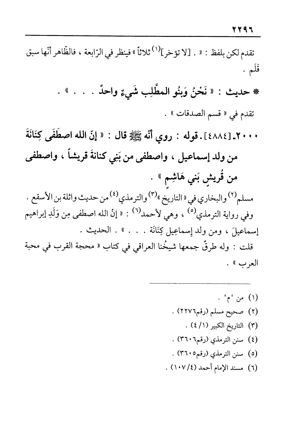 2000 - [4884]- قوله: روي أنّ - صلى الله عليه وسلم - قال: "إنّ الله اصطَفَى كنَانَةَ من ولد إسماعيل، واصطفى من بَنِي كنانةَ قريشًا، واصطفى من قُريشٍ بَني هَاشِمٍ".