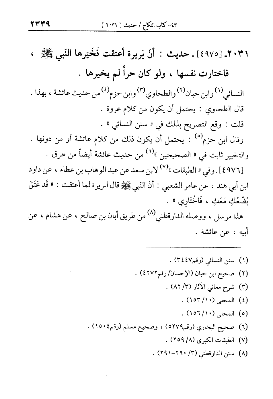 2031 - [4975]- حديث: أن بَريرة أعتقت فَخَيّرها النّبي - صلى الله عليه وسلم -، فاختارت نفسها، ولو كان حرًّا لم يخيرها.