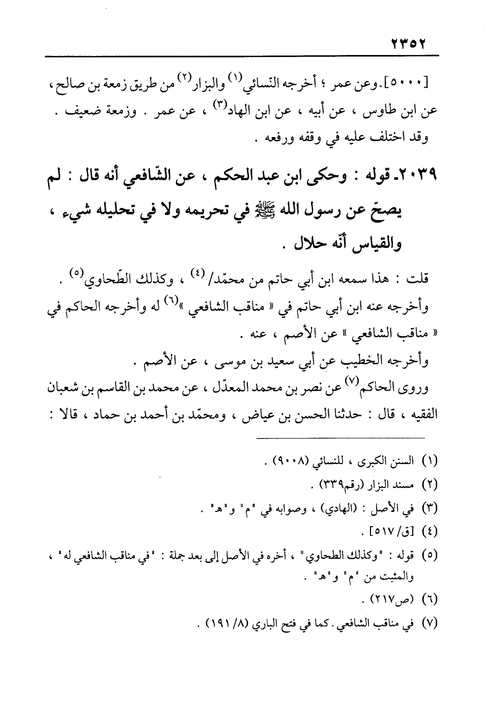 (¬5) قوله: "وكذلك الطحاوي"، آخره في الأصل إلى بعد جملة: "في مناقب الشافعي له"، والمثبت من "م" و "هـ".