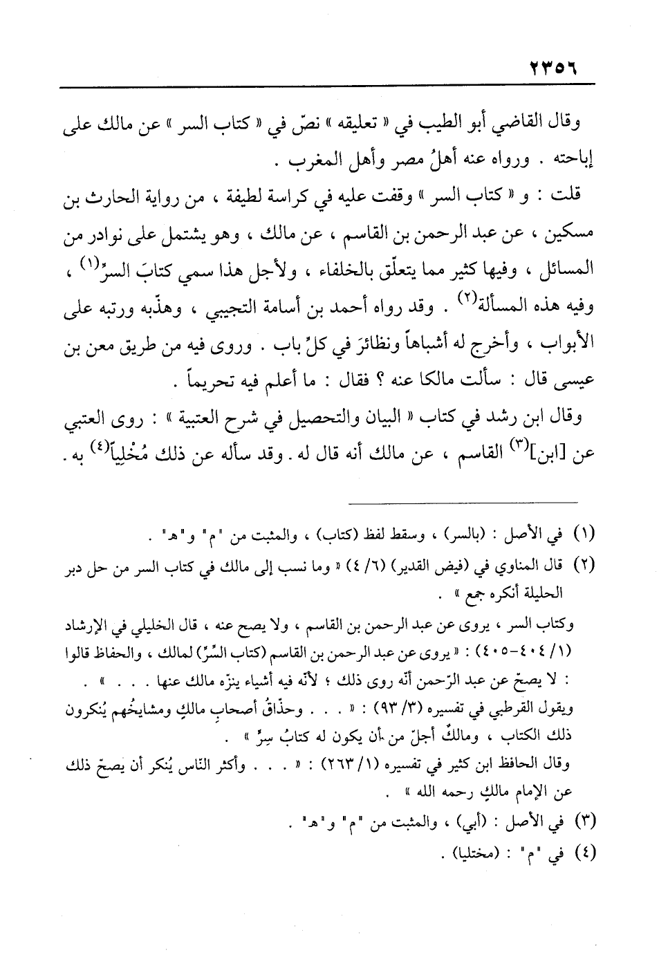 ويقول القرطبي في تفسيره (3/ 93): " ... وحذّاقُ أصحابِ مالكٍ ومشايخُهم يُنكرون ذلك الكتاب، ومالكٌ أجلّ من أن يكون له كتابُ سِرٍّ".