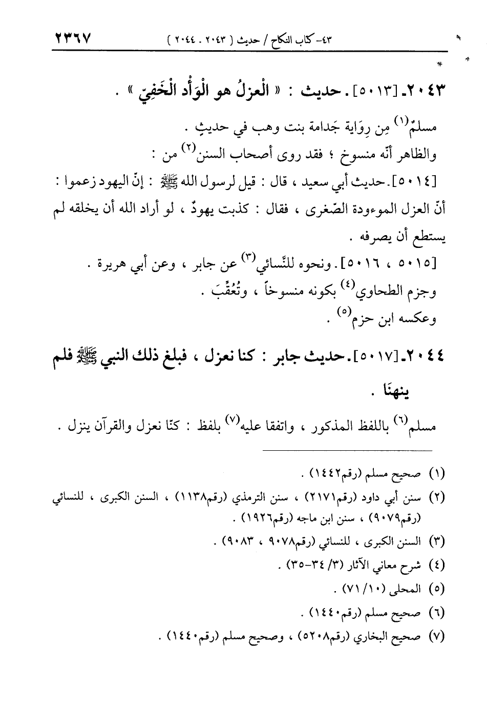 2043 - [5013]- حديث: "الْعزلُ هو الْوَأْد الْخَفِيّ".