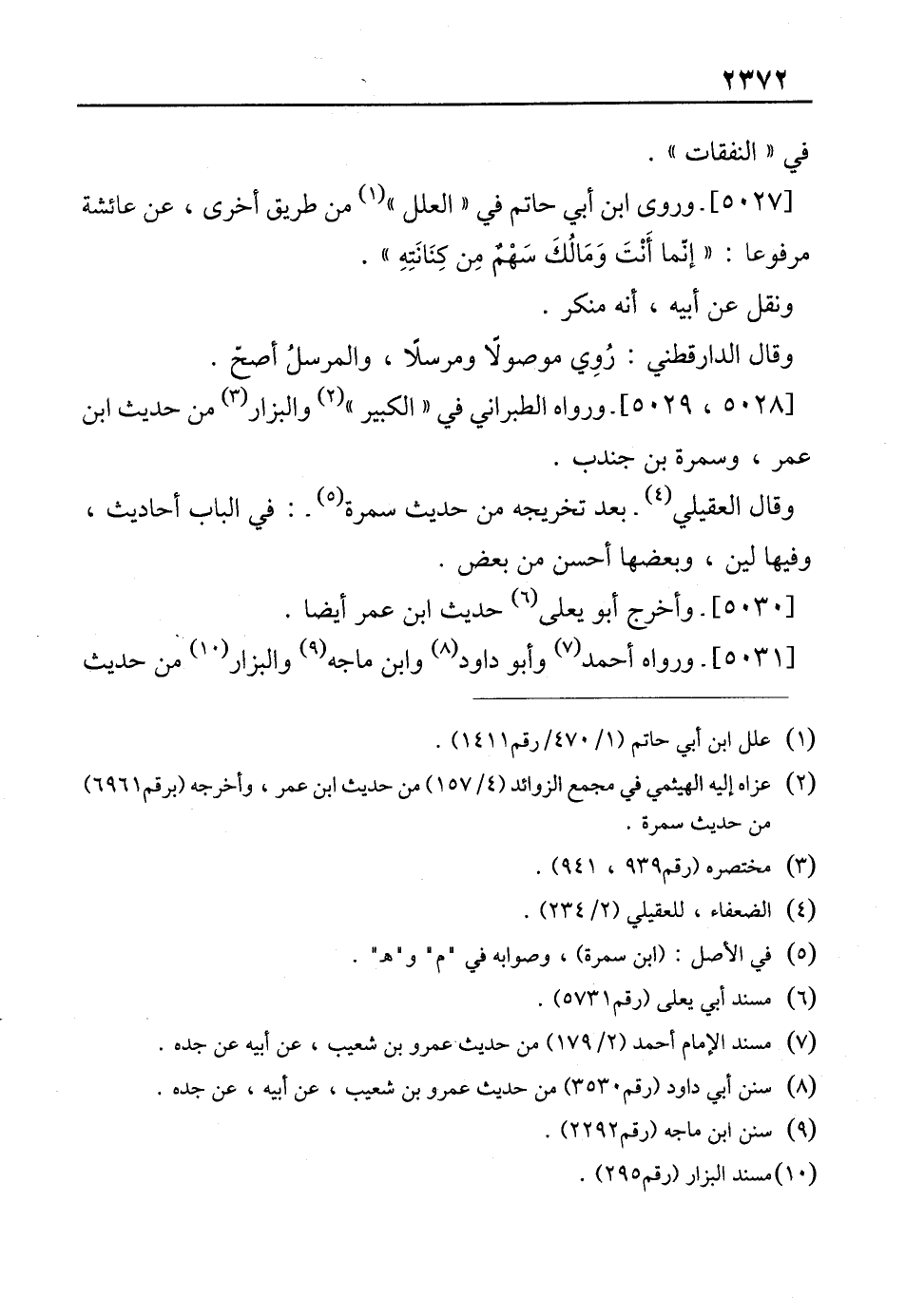 [5027]- وروى ابن أبي حاتم في "العلل" (¬1) من طريق أخرى، عن عائشة مرفوعًا: "إنما أَنْتَ وَمَالُكَ سَهْمٌ مِن كِنَانَتِهِ".