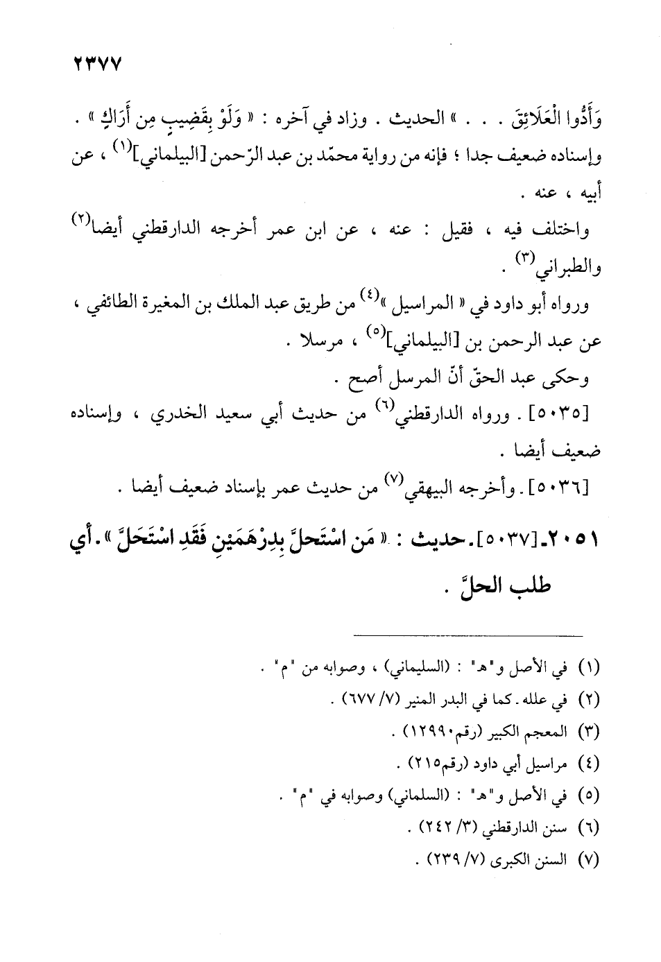 2051 - [5037]- حديث: "مَن اسْتَحلَّ بِدِرْهَمَينِ فَقَدِ اسْتَحَلَّ" -أي طلب الحلَّ.