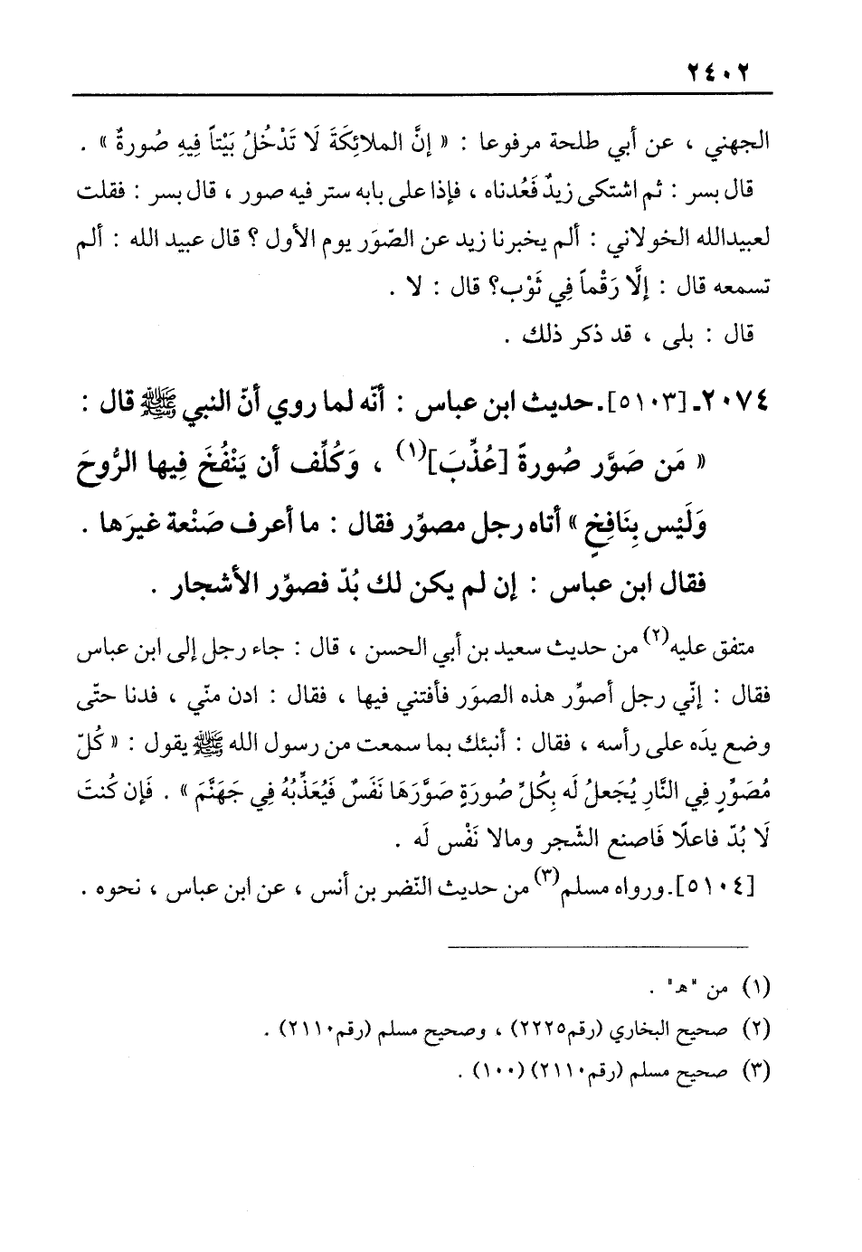 2074 - [5103]- حديث ابن عباس: أنّه لما روي أنّ النبي - صلى الله عليه وسلم - قال: "مَن صَوَّر صُورةً [عُذِّبَ] (¬1)، وَكُلِّف أن يَنْفُخَ فِيها الرُّوحَ وَلَيْس بِنَافِخٍ" أتاه رجل مصوِّر فقال: ما أعرف صَنْعة غيرَها.