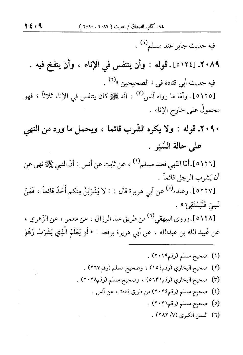 2089 - [5124]- قوله: وأن يتنفس في الإناء، وأن ينفخ فيه.