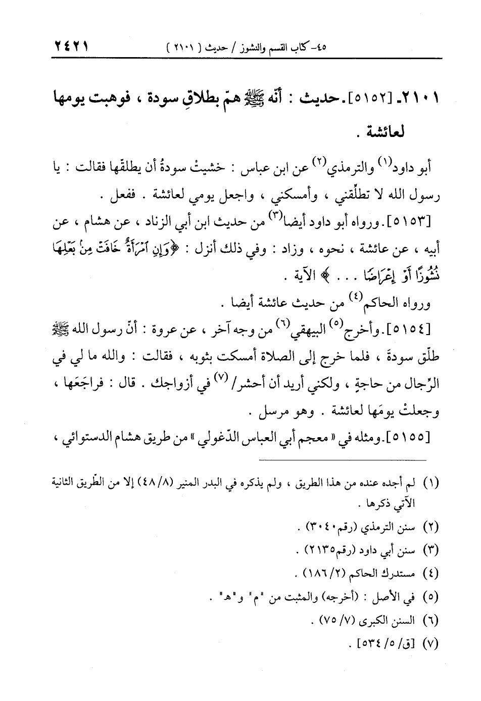 2101 - [5152]- حديث: أنّه - صلى الله عليه وسلم - همّ بطلاقِ سودة، فوهبت يومها لعائشة.