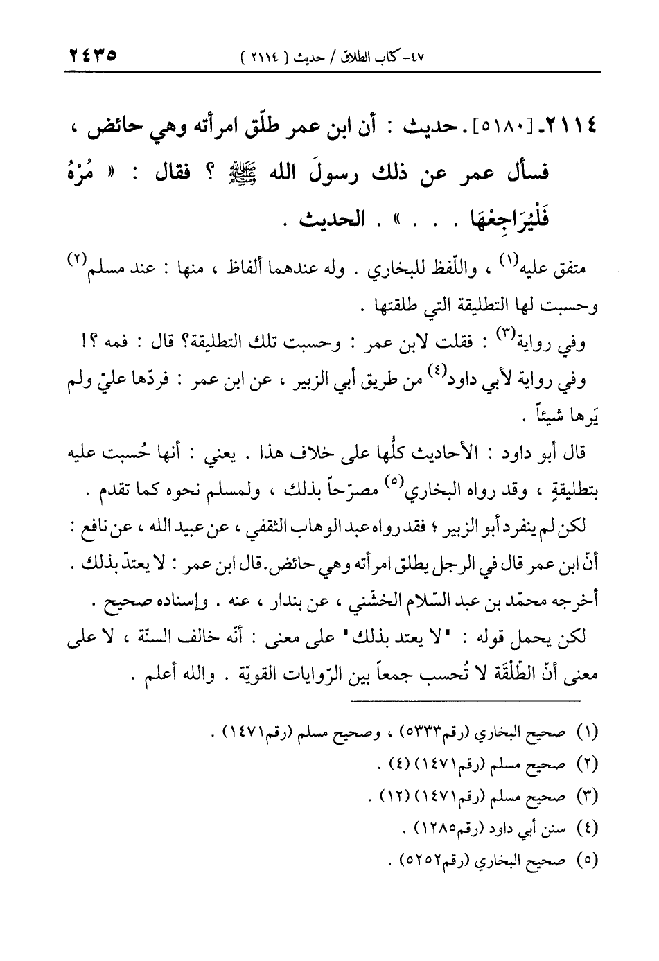 2114 - [5180]- حديث: أن ابن عمر طلّق امرأته وهي حائض، فسأل عمر عن ذلك رسولَ الله - صلى الله عليه وسلم -؟ فقال: "مُرْهُ فَلْيُرَاجِعْهَا ... ". الحديث.