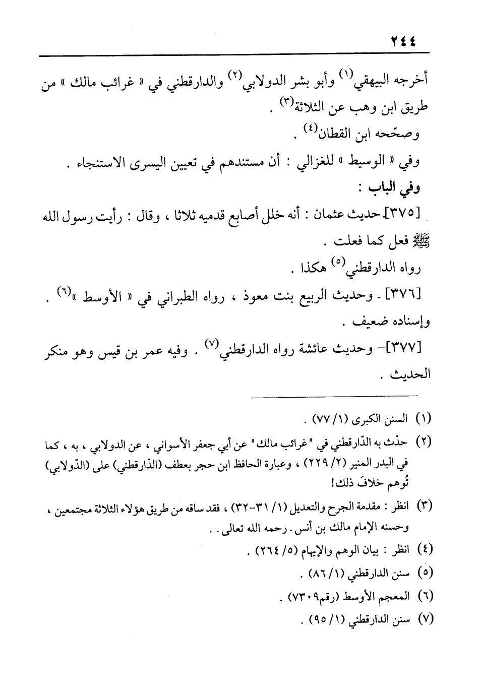 [375]- حديث عثمان: أنه خلل أصابع قدميه ثلاثا، وقال: رأيت رسول الله - صلى الله عليه وسلم - فعل كما فعلت.