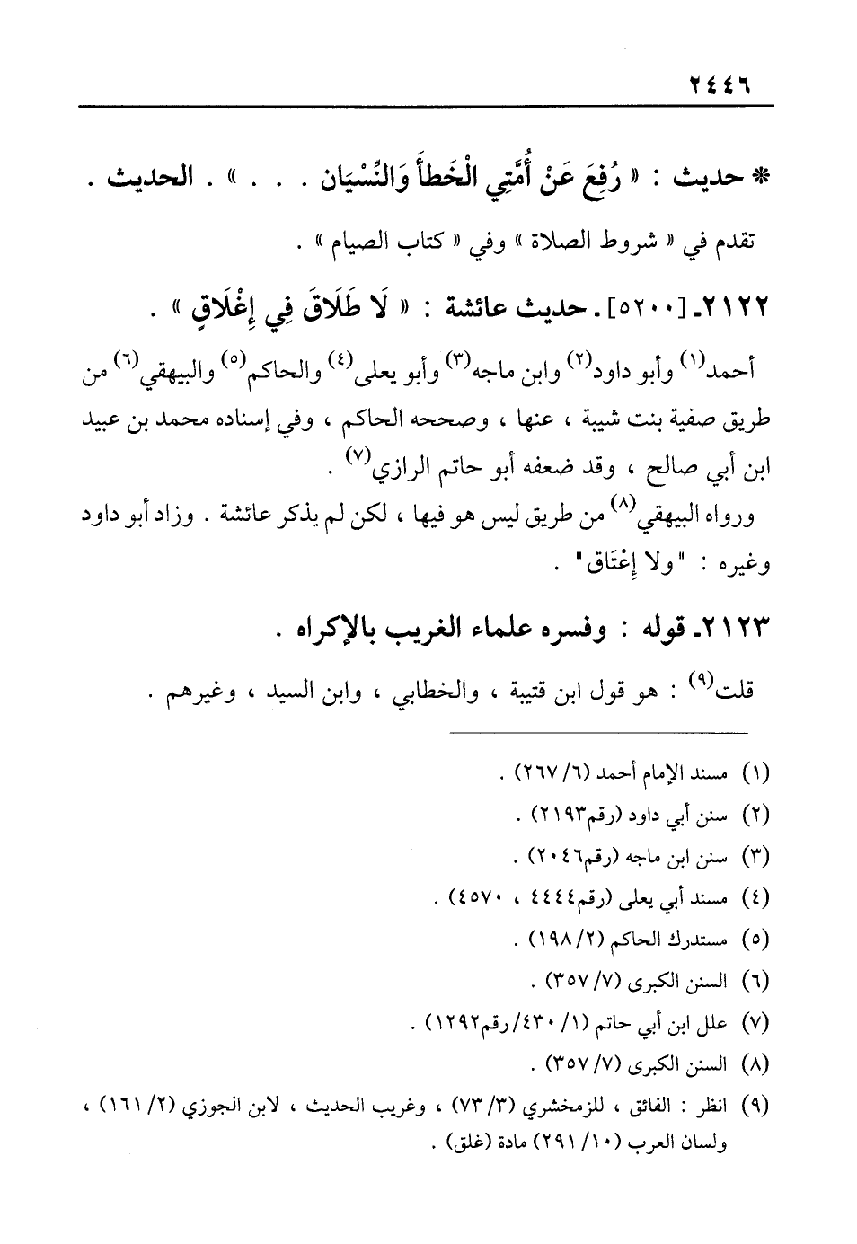 2122 - [5200]- حديث عائشة: "لاَ طَلَاقَ في إِغْلَاقٍ".