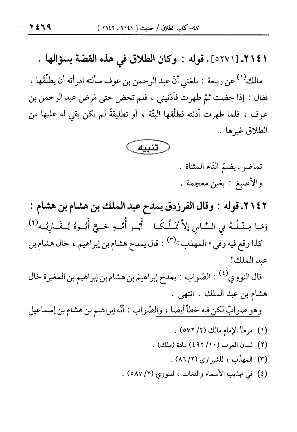 2142 - قوله: وقال الفرزدق يمدح عبد الملك بن هشام بن هشام: