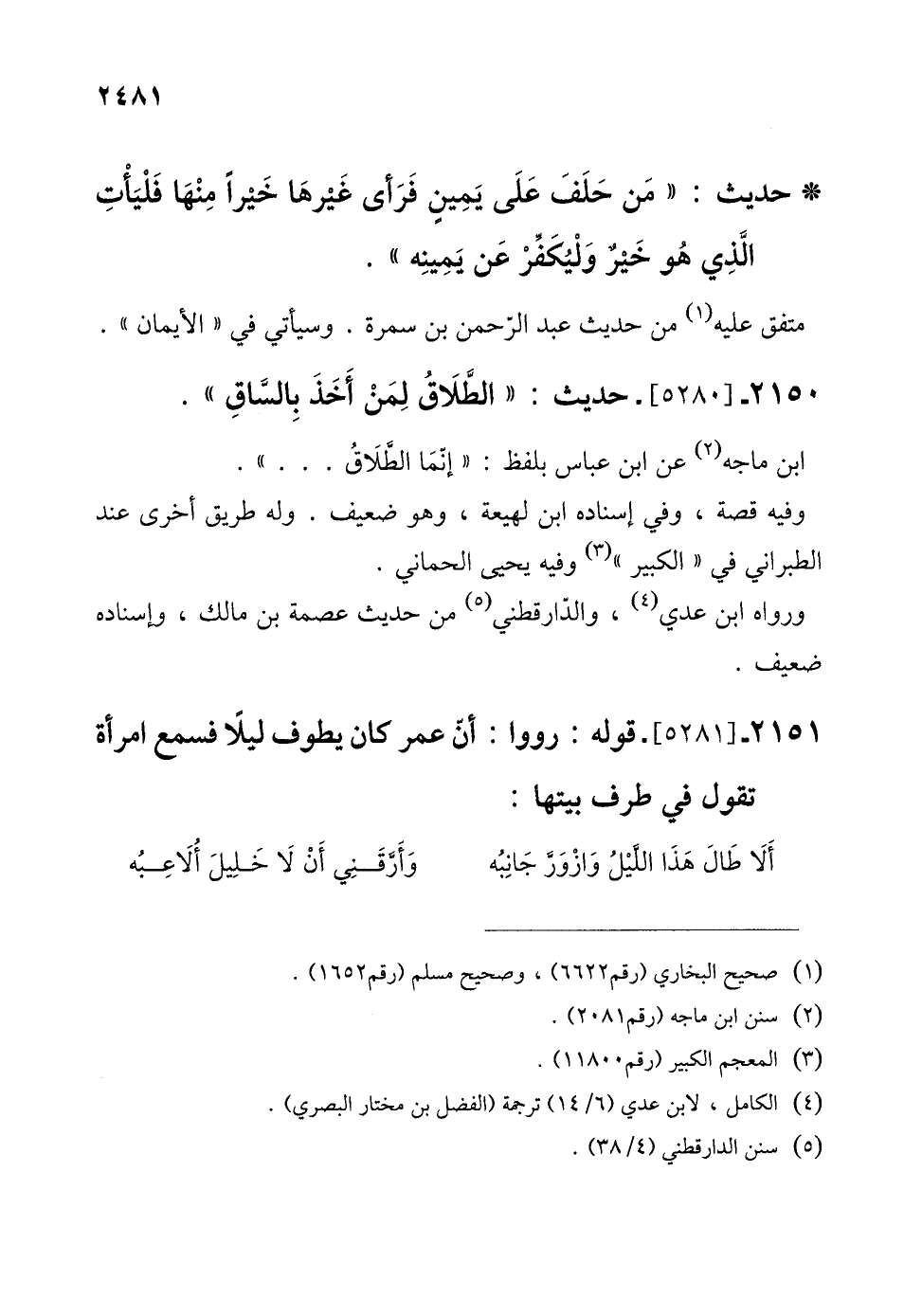 2150 - [5280]- حديث: "الطَّلَاقُ لِمَنْ أَخَذَ بِالسَّاقِ".