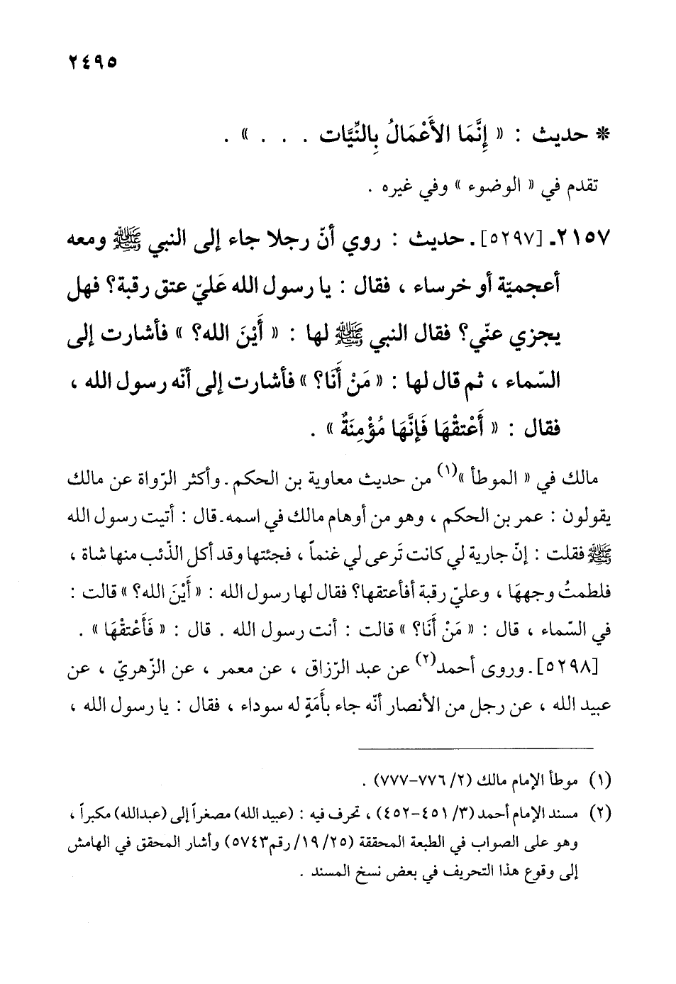 [5298]- وروى أحمد (¬2) عن عبد الرّزاق، عن معمر، عن الزّهريّ، عن عبيد الله، عن رجل من الأنصار أنّه جاء بأَمَةٍ له سوداء، فقال: يا رسول الله،