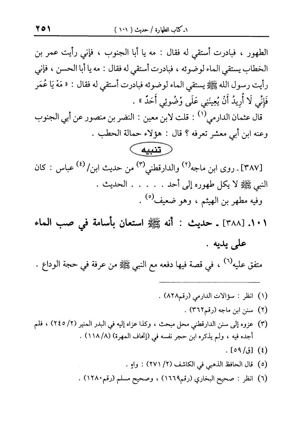 101 - [388]- حديث: أنه - صلى الله عليه وسلم - استعان بأسامة في صب الماء على يديه.