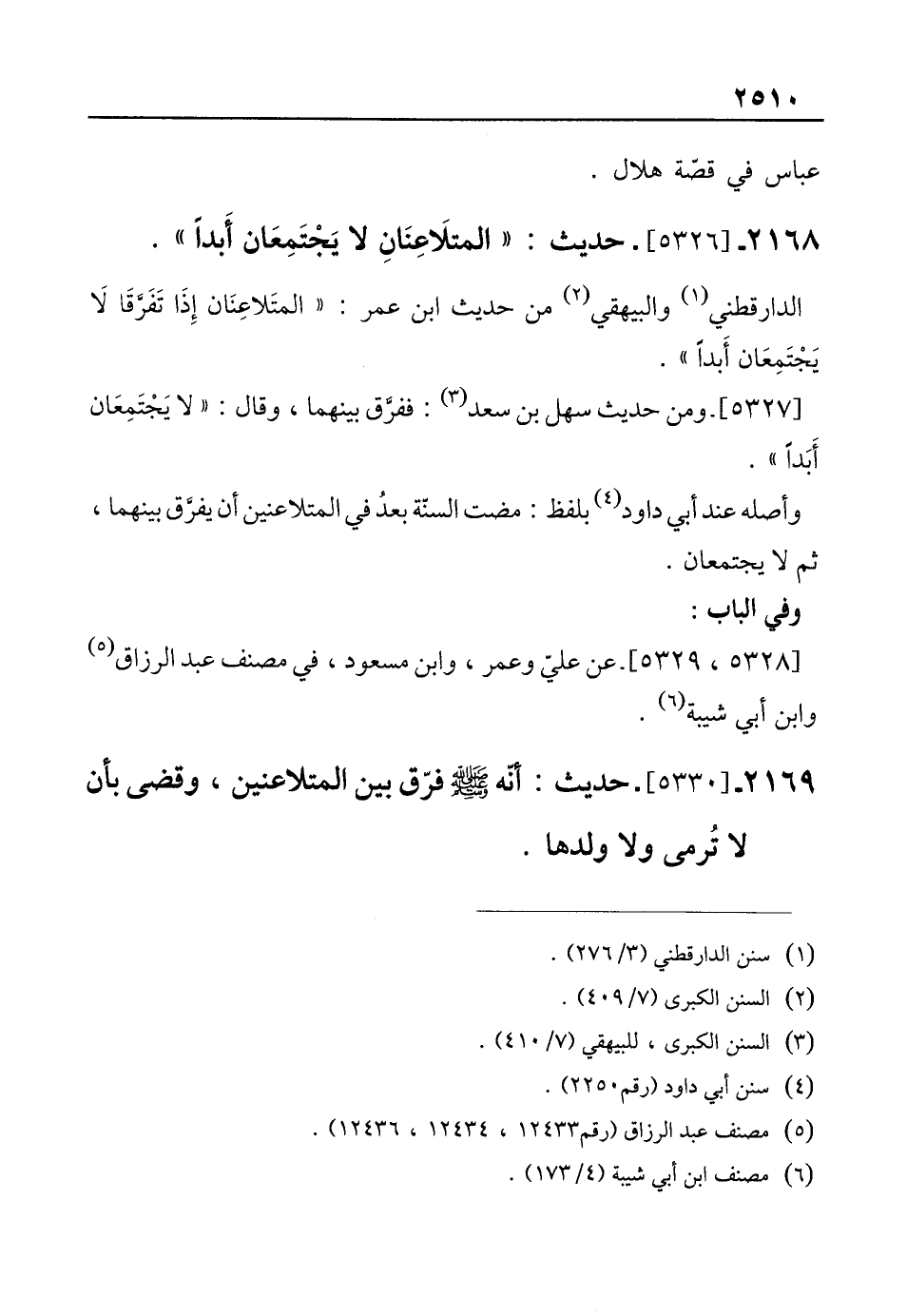 2168 - [5326]- حديث: "المتلاَعِنَانِ لا يَجْتَمِعَان أَبدًا".