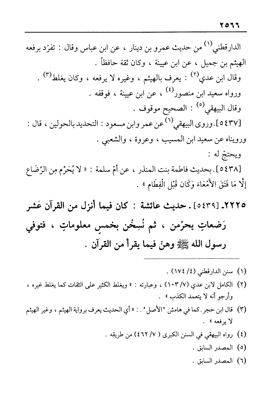 [5437]- وروى البيهقي (¬6) عن عمر وابن مسعود: التحديد بالحولين، قال: ورويناه عن سعيد ابن المسيب، وعروة، والشعبي.