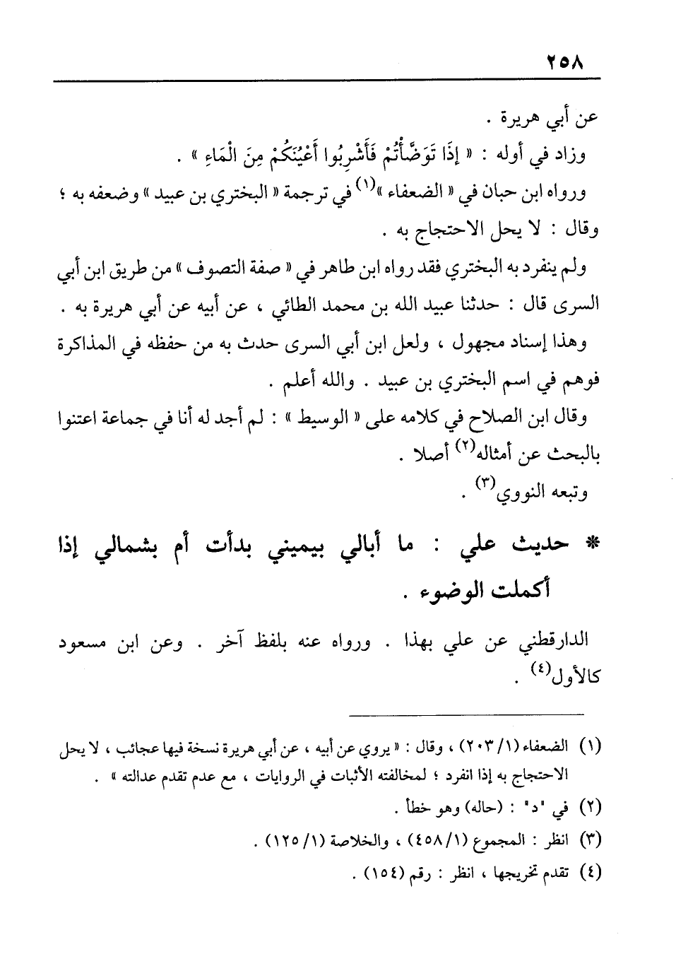* حديث علي: ما أبالي بيميني بدأت أم بشمالي إذا كملت الوضوء.