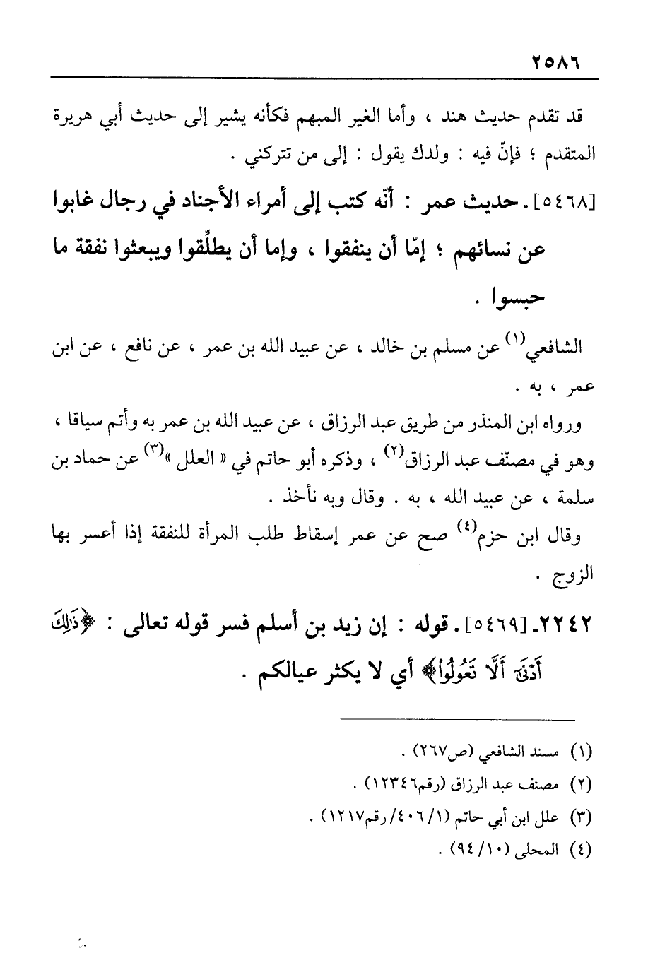 2242 - [5469]- قوله: إن زيد بن أسلم فسر قوله تعالى: {ذَلِكَ أَدْنَى أَلَّا تَعُولُوا} أي لا يكثر عيالكم.