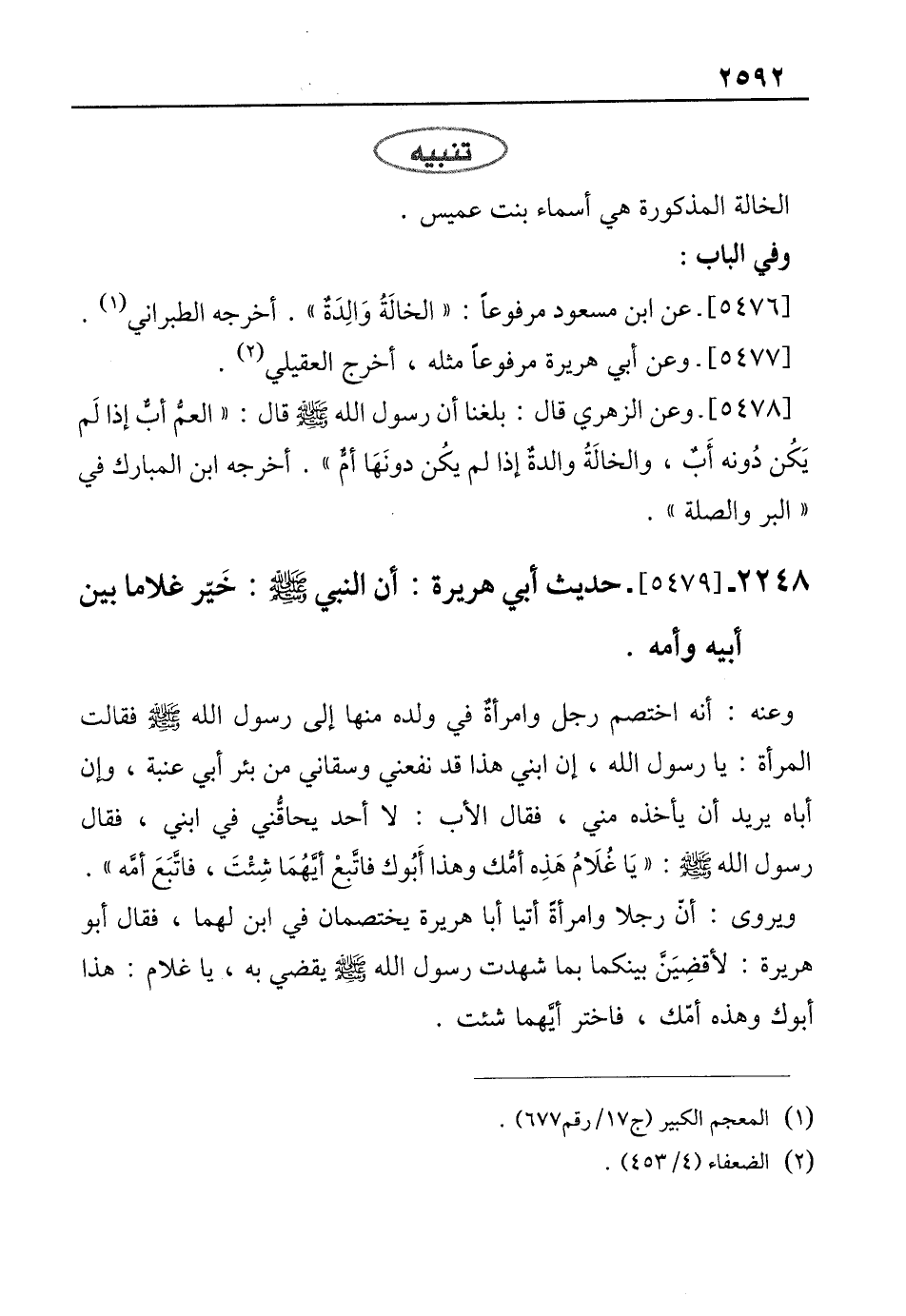 2248 - [5479]- حديث أبي هريرة: أن النبي - صلى الله عليه وسلم -: خَيّر غلاما بين أبيه وأمه.