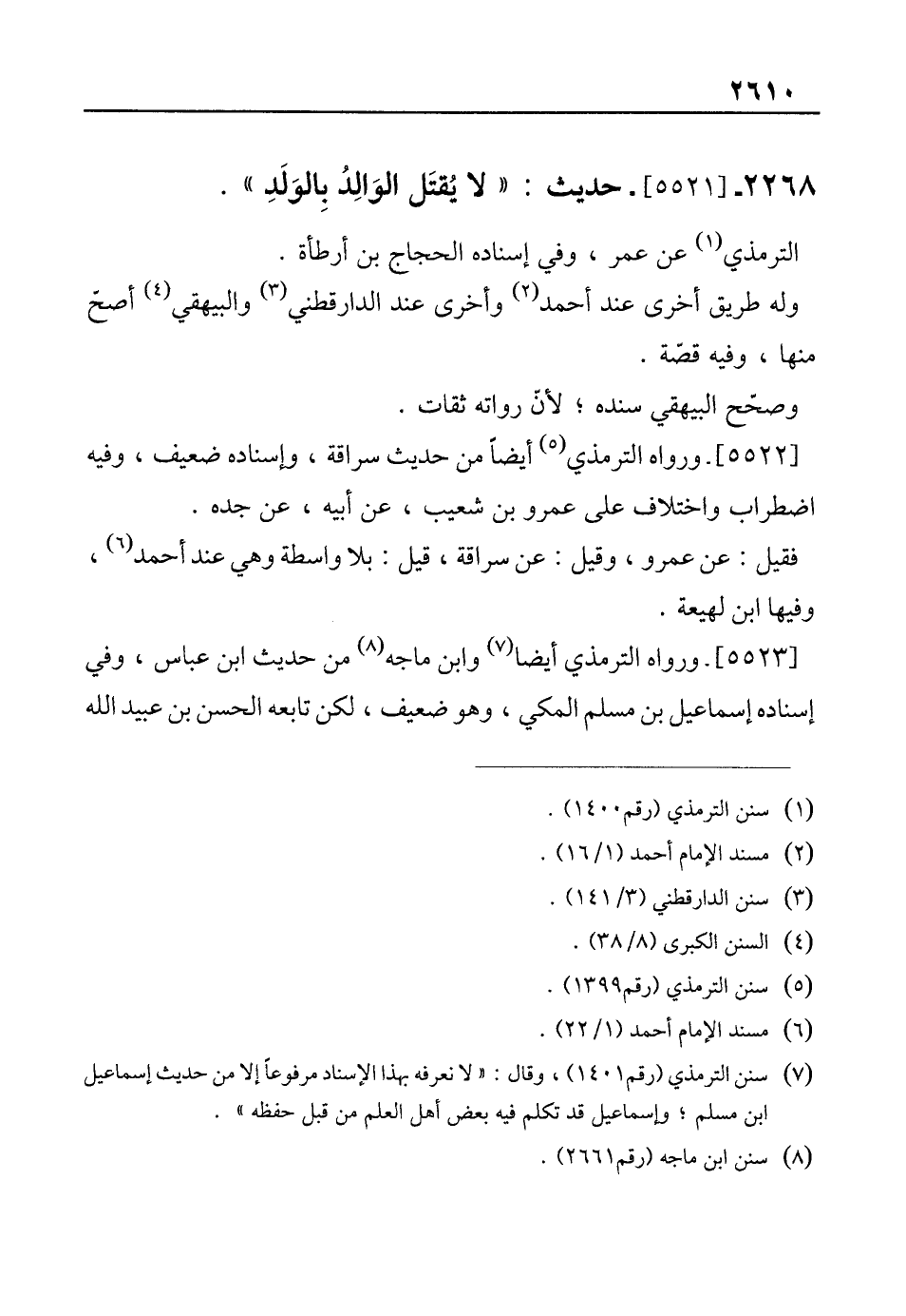 2268 - [5521]- حديث: "لا يُقتَل الوَالِدُ بِالوَلَدِ".