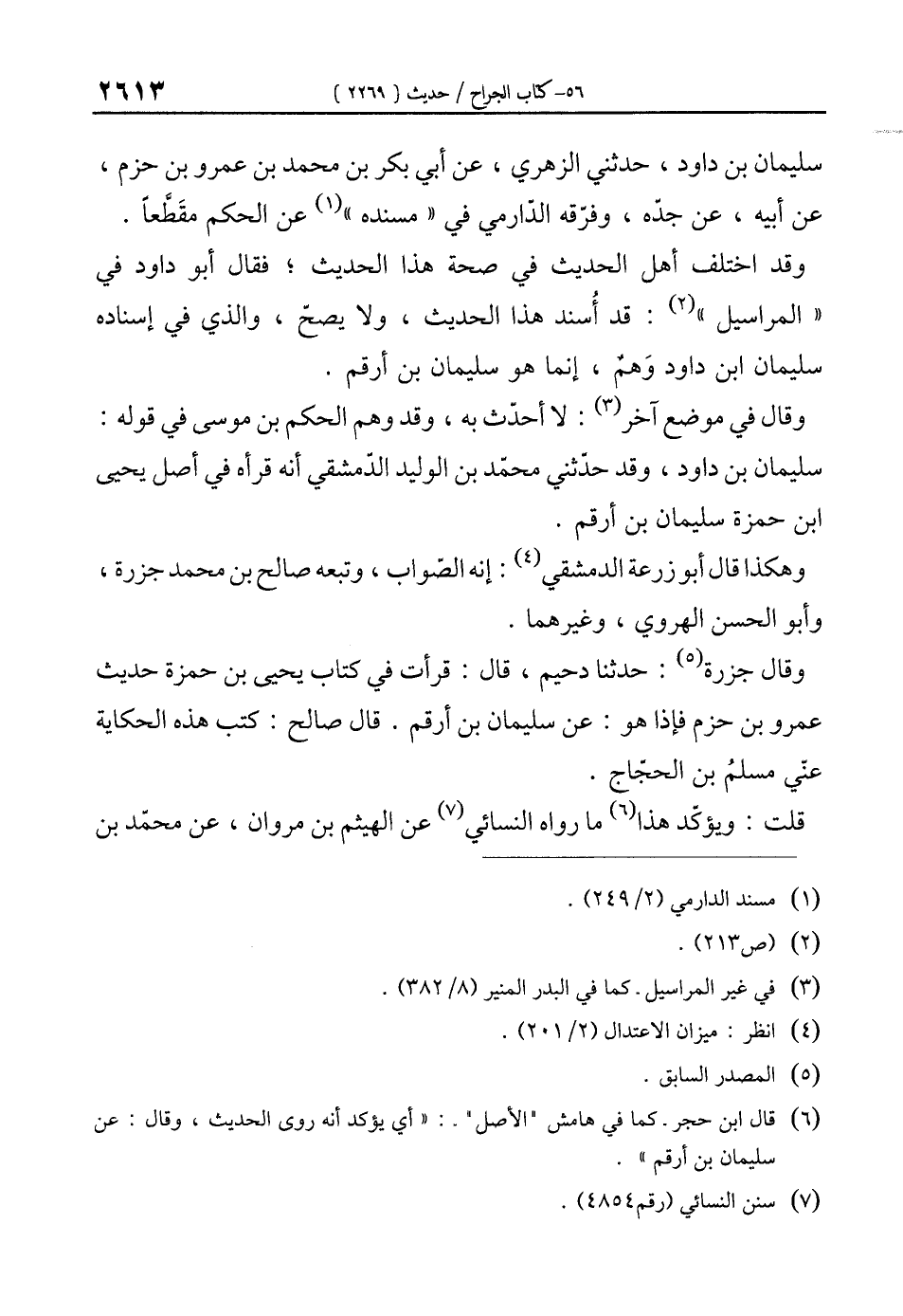 (¬6) قال ابن حجر -كما في هامش "الأصل"-: "أي يؤكد أنه روى الحديث، وقال: عن سليمان بن أرقم".