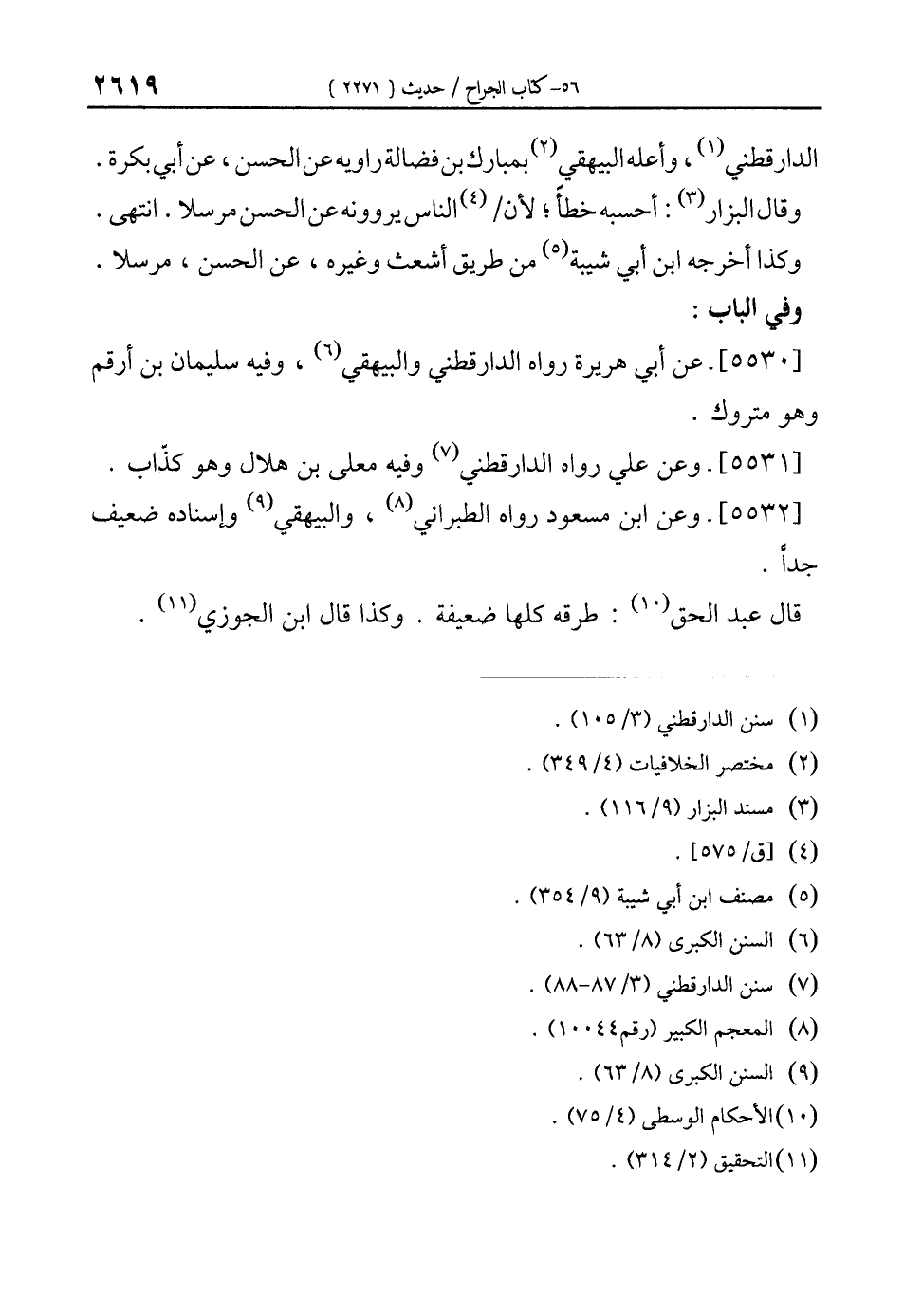 [5530]- عن أبي هريرة رواه الدارقطني والبيهقي (¬6)، وفيه سليمان بن أرقم وهو متروك.