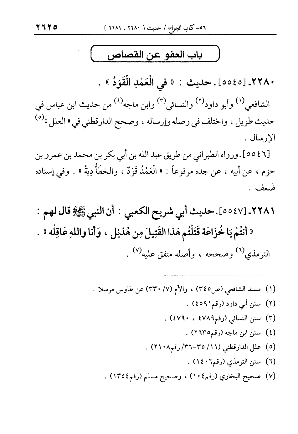2280 - [5545]- حديث: "في الْعَمْدِ الْقَوَدُ".