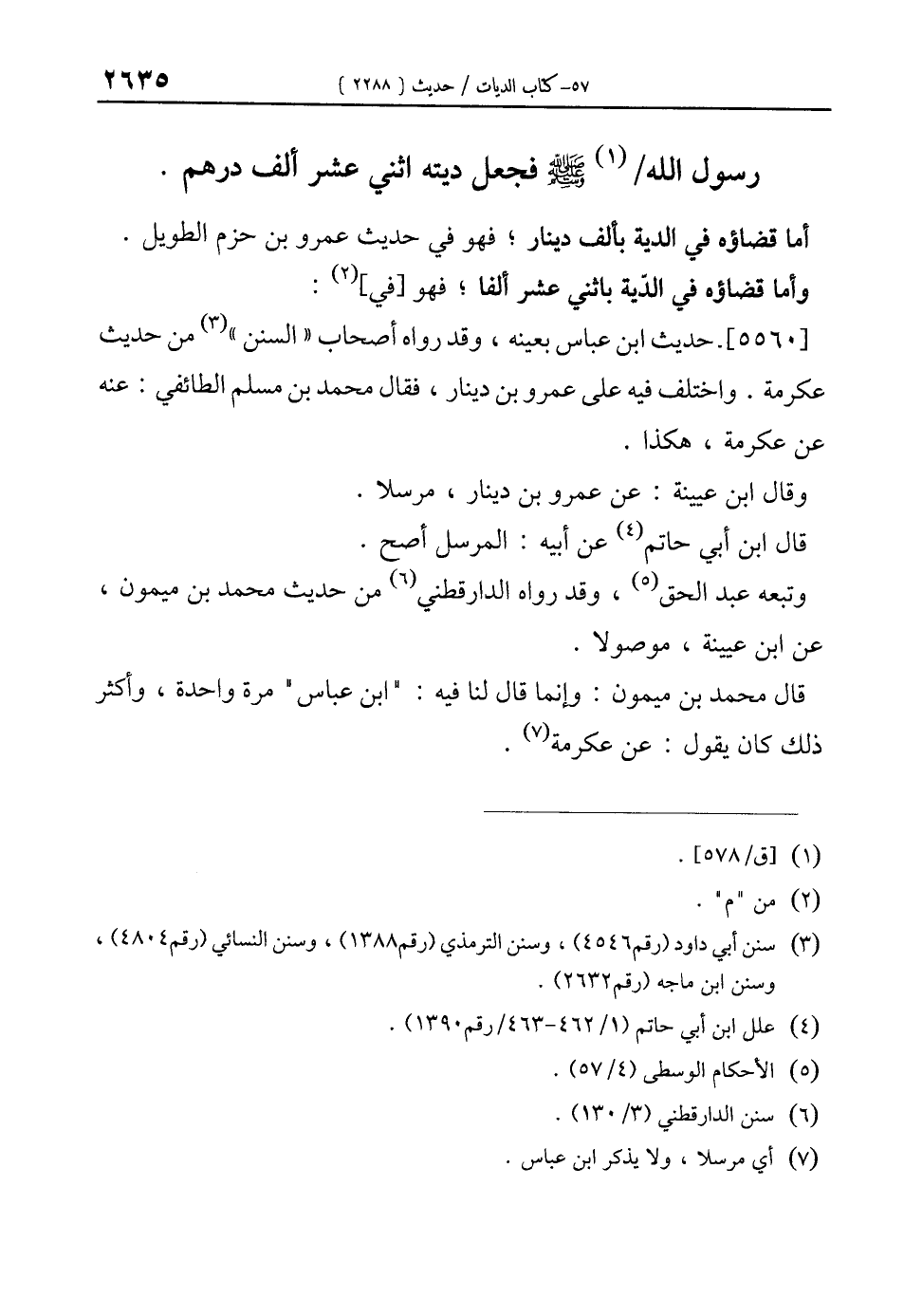 أما قضاؤه في الدية بألف دينار؛ فهو في حديث عمرو بن حزم الطويل. وأما قضاؤه في الدّية باثني عشر ألفا؛ فهو [في] (¬2):