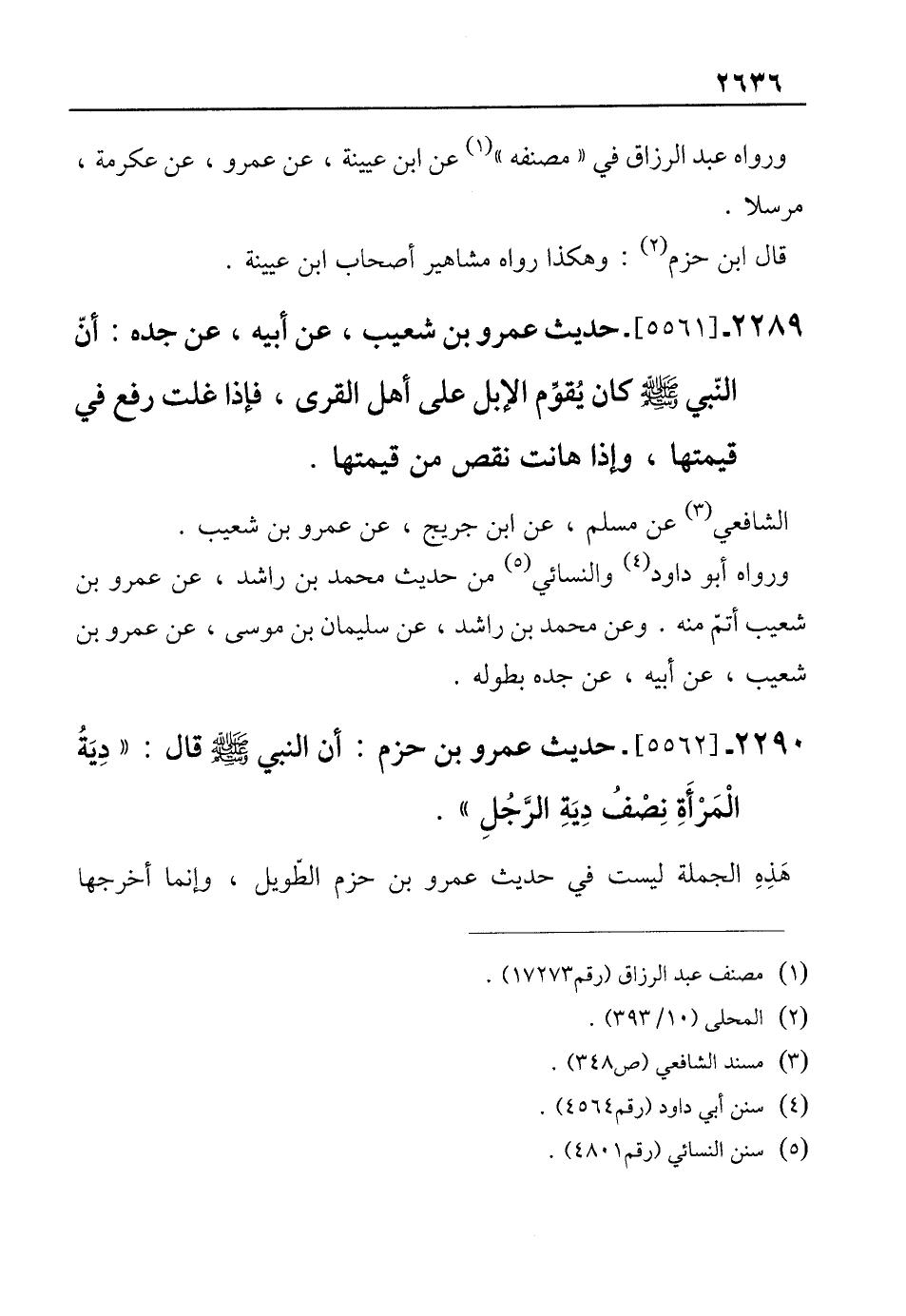 2290 - [5562]- حديث عمرو بن حزم: أن النبي - صلى الله عليه وسلم - قال "دِيَةُ الْمَرْأَةِ نِصْفُ دِيَةِ الرَّجُلِ".