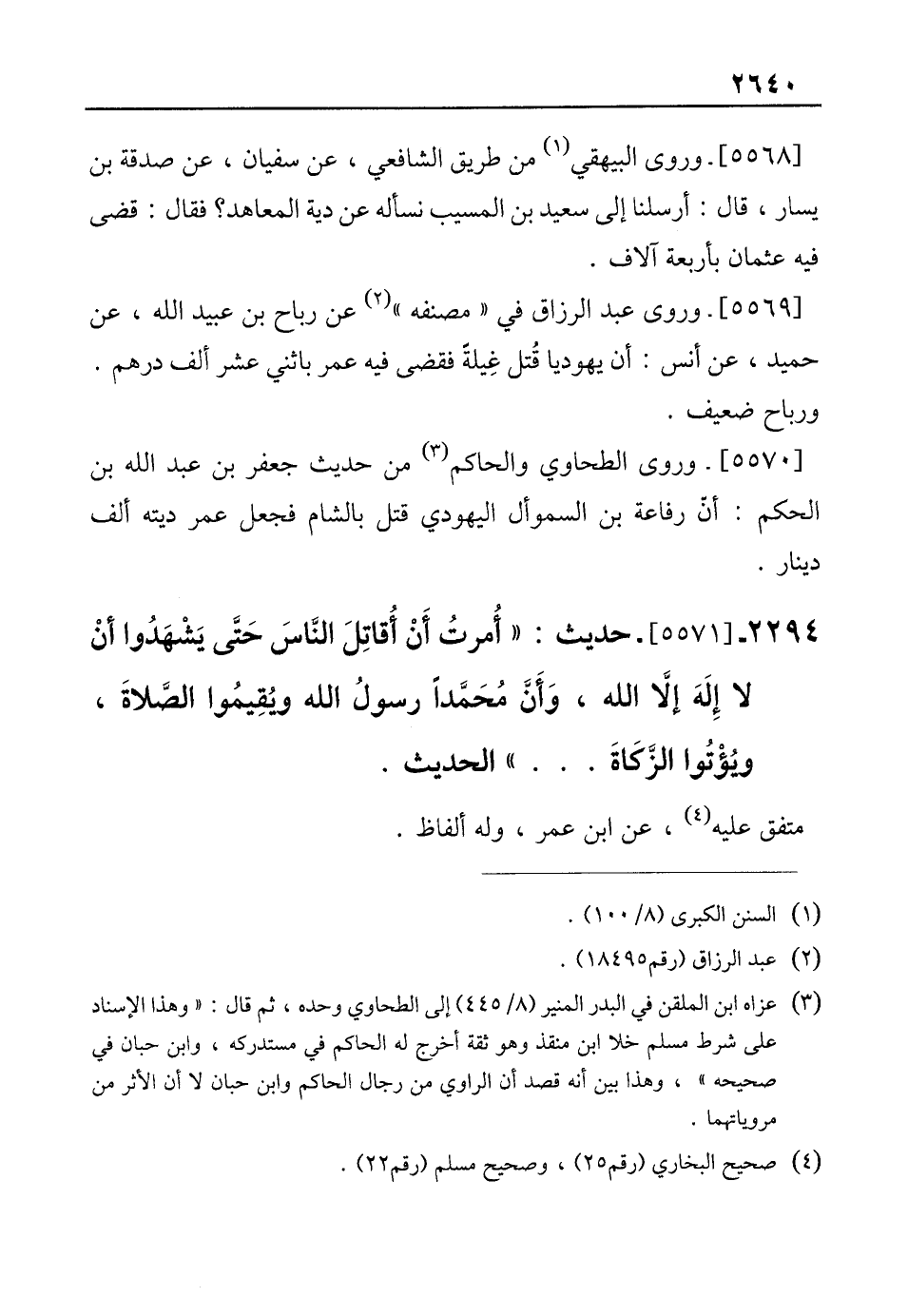 2294 - [5571]- حديث: "أُمرتُ أَنْ أُقاتِلَ النَّاسَ حَتَّى يَشْهَدُوا أنْ لا إِلَهَ إلَّا الله، وَأَن مُحَمَّدًا رسولُ الله ويُقِيمُوا الصَّلاةَ، ويُؤْتوا الزَّكَاةَ ... " الحديث.