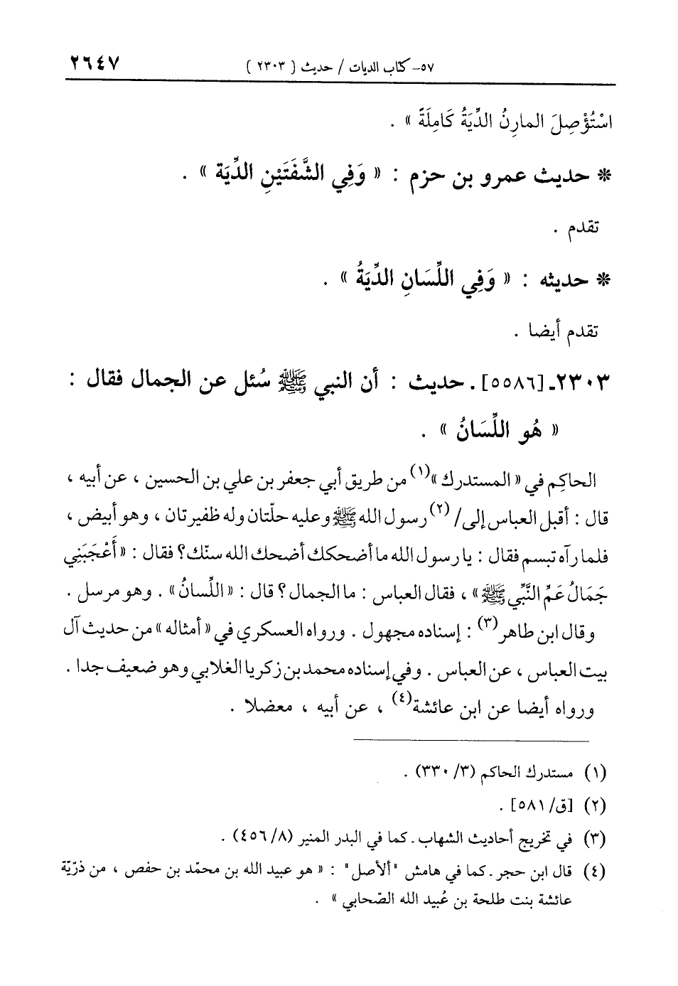 2303 - [5586]- حديث: أن النبي - صلى الله عليه وسلم - سُئل عن الجمال فقال: "هُو اللِّسَانُ".