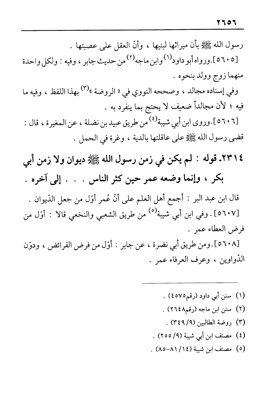 [5608]- ومن طريق أبي نضرة، عن جابر: أوّل من فرض الفرائض، ودوّن الدّواوين، وعرف العرفاء عمر.