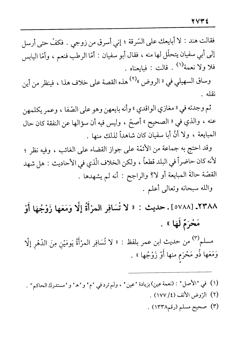 2388 - [5788]- حديث: "لا تُسَافِر المرْأَةُ إلَّا وَمَعَها زَوْجُهَا أَوْ مَحْرَمٌ لَهَا".