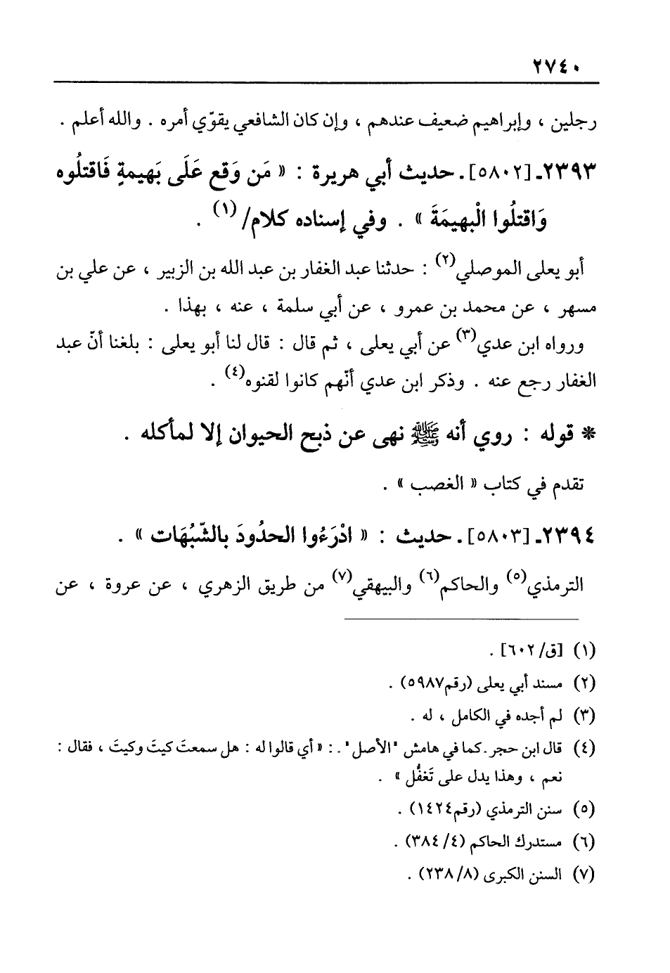 2393 - [5802]- حديث أبي هريرة: "مَن وَقع عَلَى بَهيمةٍ فَاقتلُوه وَاقتلُوا الْبهيمَةَ". وفي إسناده كلام (¬1).