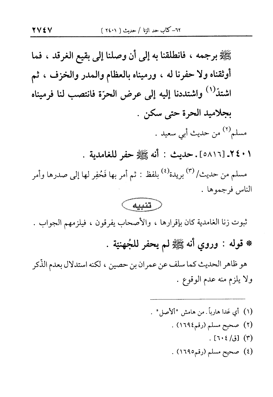 2401 - [5816]- حديث: أنه - صلى الله عليه وسلم - حفر للغامدية.