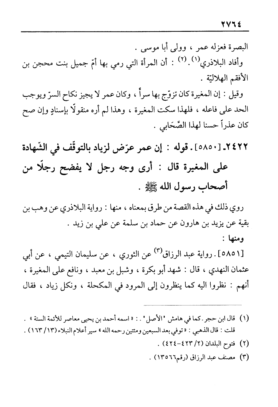 2422 - [5850]- قوله: إن عمر عرّض لزياد بالتوقّف في الشّهادة على المغيرة قال: أرى وجه رجل لا يفضح رجلًا من أصحاب رسول الله - صلى الله عليه وسلم -.