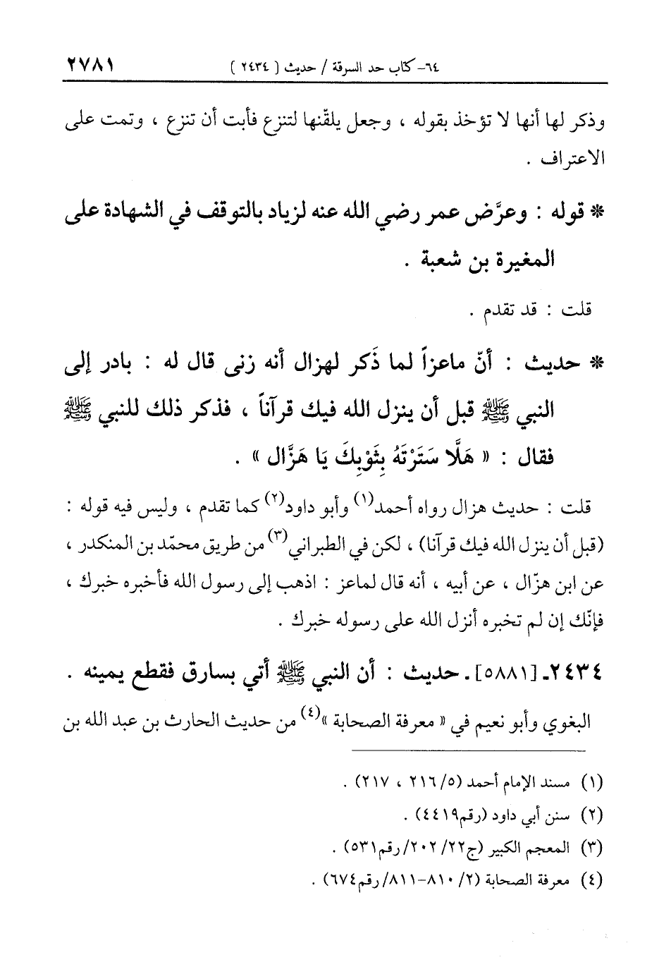 2434 - [5881]- حديث: أن النبي - صلى الله عليه وسلم - أتي بسارق فقطع يمينه.