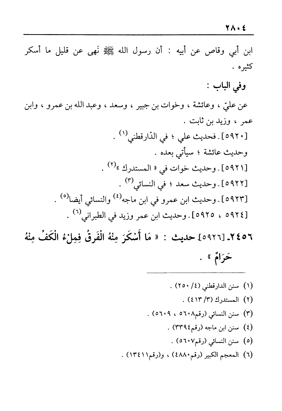 ابن أبي وقاص عن أبيه: أن رسول الله - صلى الله عليه وسلم - نَهى عن قليل ما أسكر كثيره.