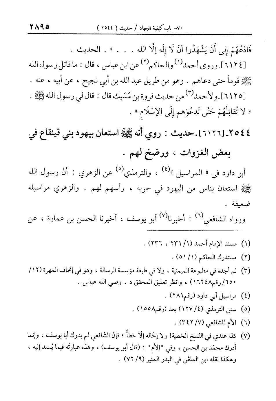 2544 - [6126]- حديث: روي أنَّه - صلى الله عليه وسلم - استعان بيهود بني قينقاع في بعض الغزوات، وورضخ لهم.